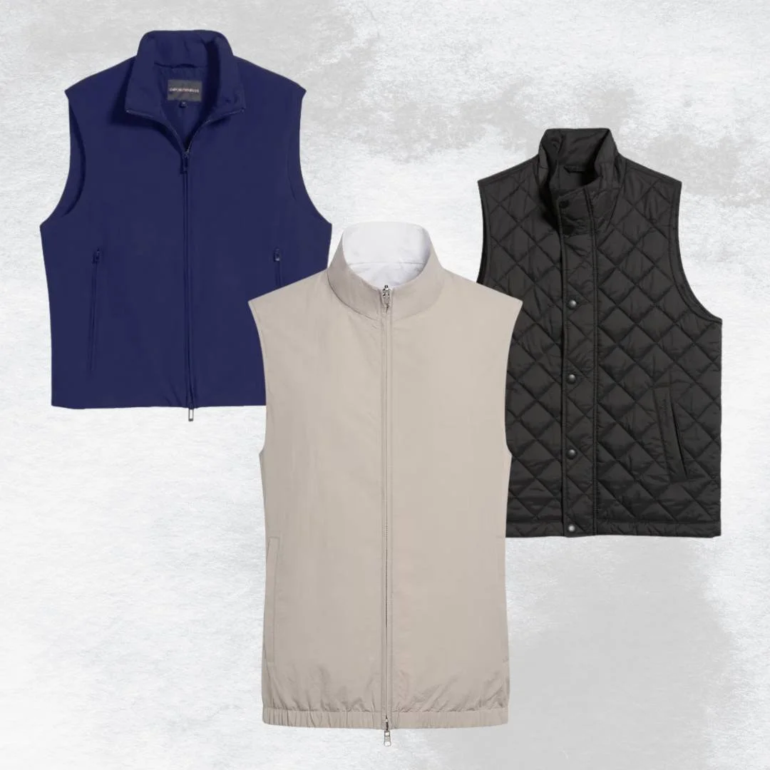 An easy option to layer over any sweater piece or long-sleeved shirt, a casual vest can add interest and dimension to any business casual men outfit. You want something thinner rather than thick and puffy, as you’ll wear it indoors. Black and dark gray work well as they are neutral and will pair with almost any shirt or sweater color. These are usually worn open or just partly zipped up the sternum/chest area.