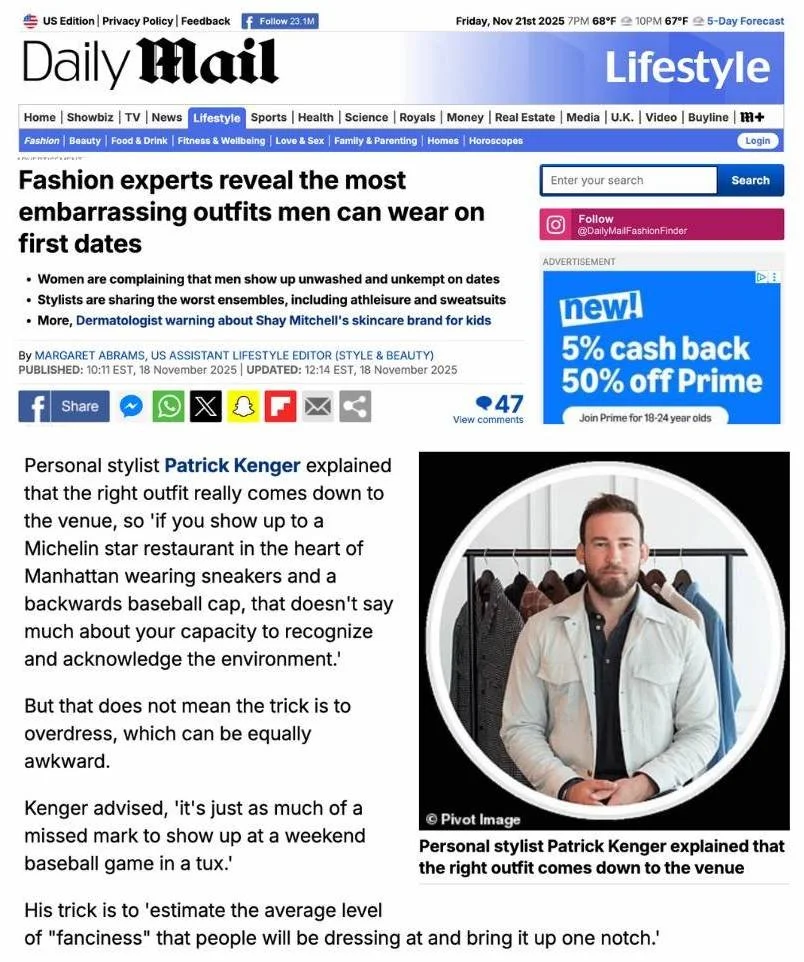 Recently the Daily Mail asked me to contribute to a piece about what men should (and shouldn’t) wear on a first date.